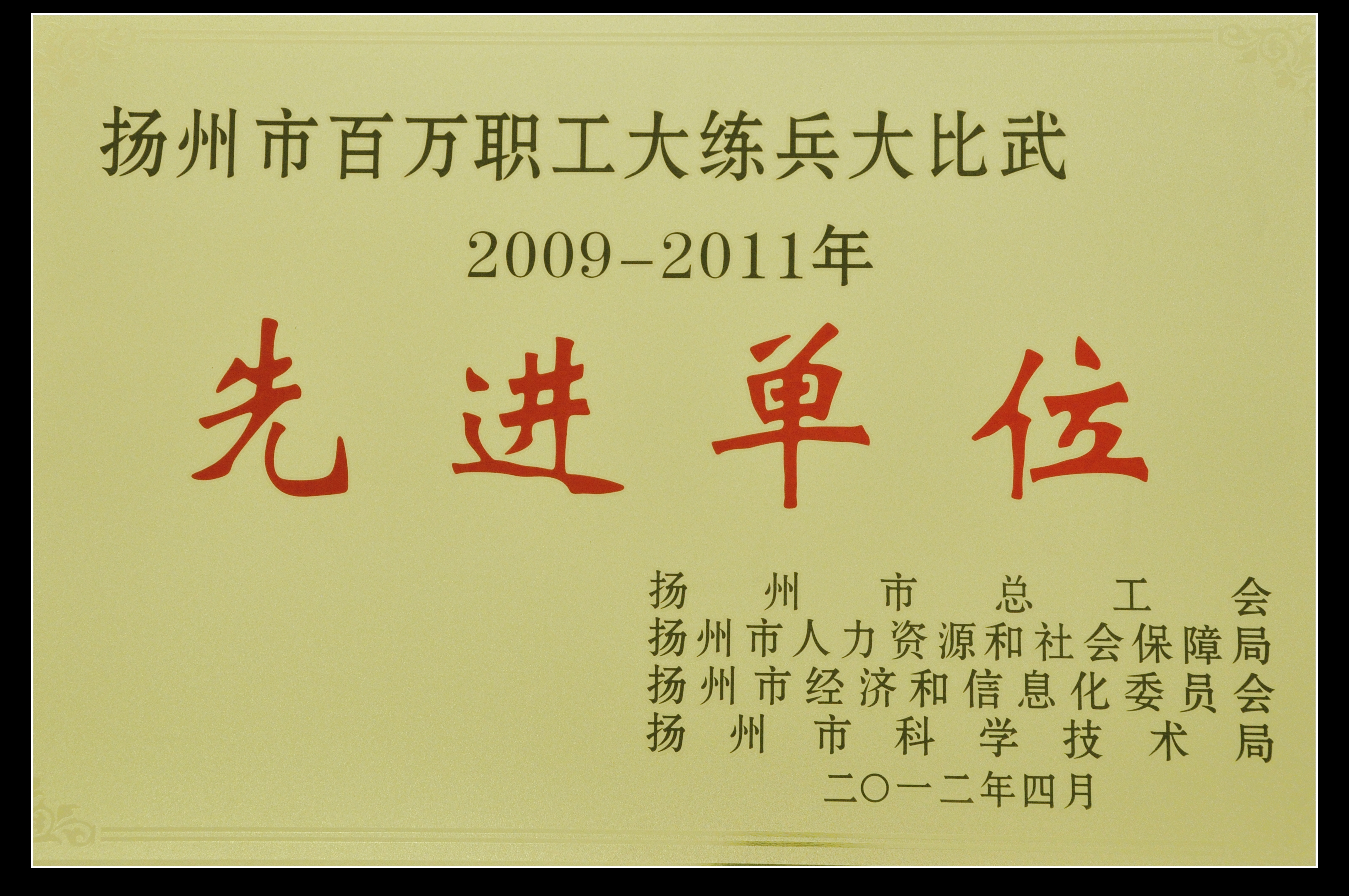 集團公司獲揚州市百萬職工大練兵大比武2009—2011年度先進單位