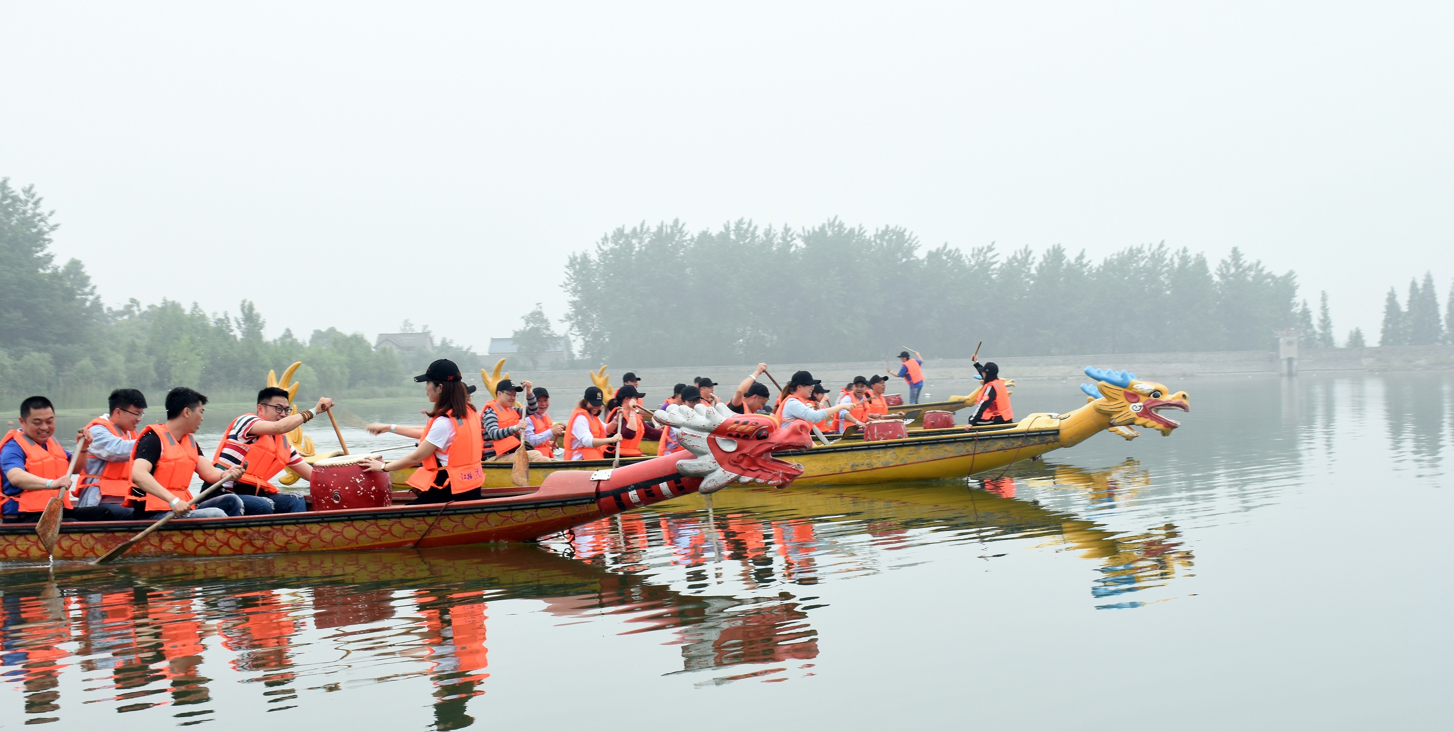 上午首個(gè)挑戰(zhàn)活動(dòng)是劃龍舟比賽。參加人員共分成4個(gè)小隊(duì),經(jīng)過簡(jiǎn)短的水上練習(xí)后,隨著裁判一聲令響,四條龍舟劈波斬浪,隊(duì)員們擼起袖子、甩開膀子、擊鼓號(hào)令,揮橈劃槳,近500米的賽道上,大家同舟共濟(jì)、奮勇爭(zhēng)先。