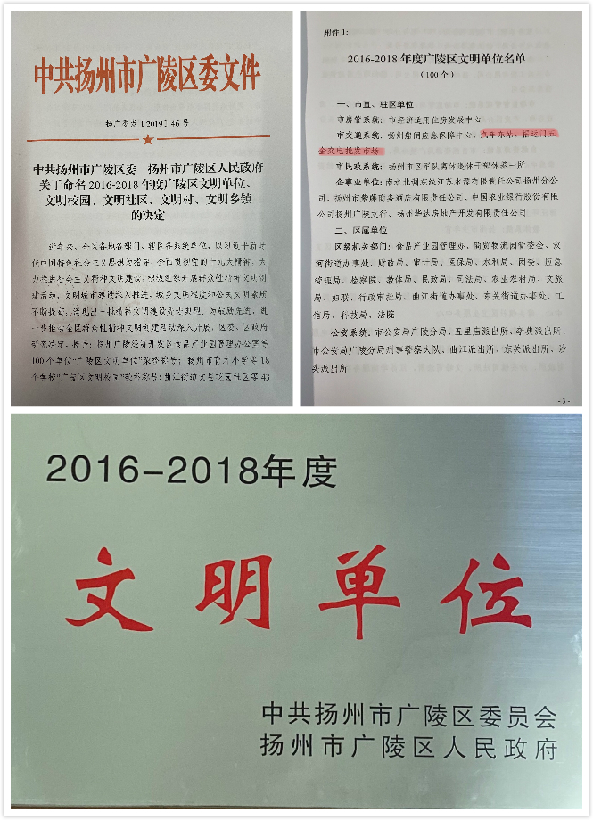 東站、五金市場獲2016--2018年度廣陵區(qū)“文明單位”榮譽(yù)稱號