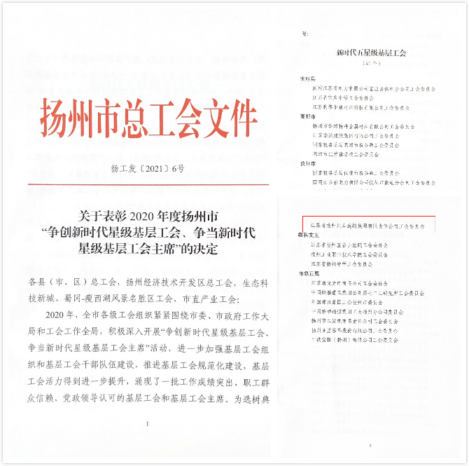 揚(yáng)汽集團(tuán)工會榮獲揚(yáng)州市“新時(shí)代五星級基層工會”稱號