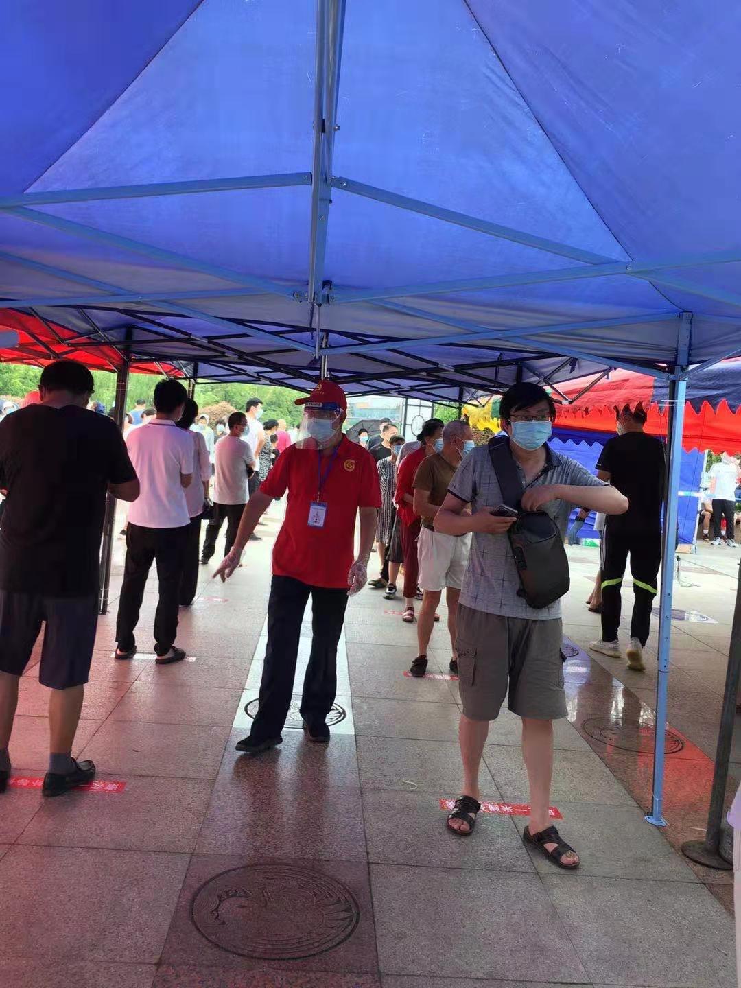 揚(yáng)州疫情爆發(fā),牽動著每個人的心,黃建軍是揚(yáng)州站的值班站長,作為一名老黨員,主動報名加入防疫阻擊戰(zhàn),于8月3日前往邗江區(qū)邗上街道進(jìn)行志愿服務(wù),深夜在臨時增加的來鶴臺廣場核酸檢測點(diǎn)貼地標(biāo),準(zhǔn)備各種用品,大、小垃圾桶等,協(xié)助社區(qū)做好準(zhǔn)備工作。第二天早上5點(diǎn),在五里社區(qū)來鶴臺廣場開展第三次核酸檢測志愿服務(wù)工作,負(fù)責(zé)4千多戶居民的秩序維護(hù)。8月7日,他又前往邗上街道蘭莊社區(qū)望月苑核酸檢測點(diǎn)參加志愿服務(wù),用平凡的堅守,打造戰(zhàn)“疫”路上的最強(qiáng)盾牌。